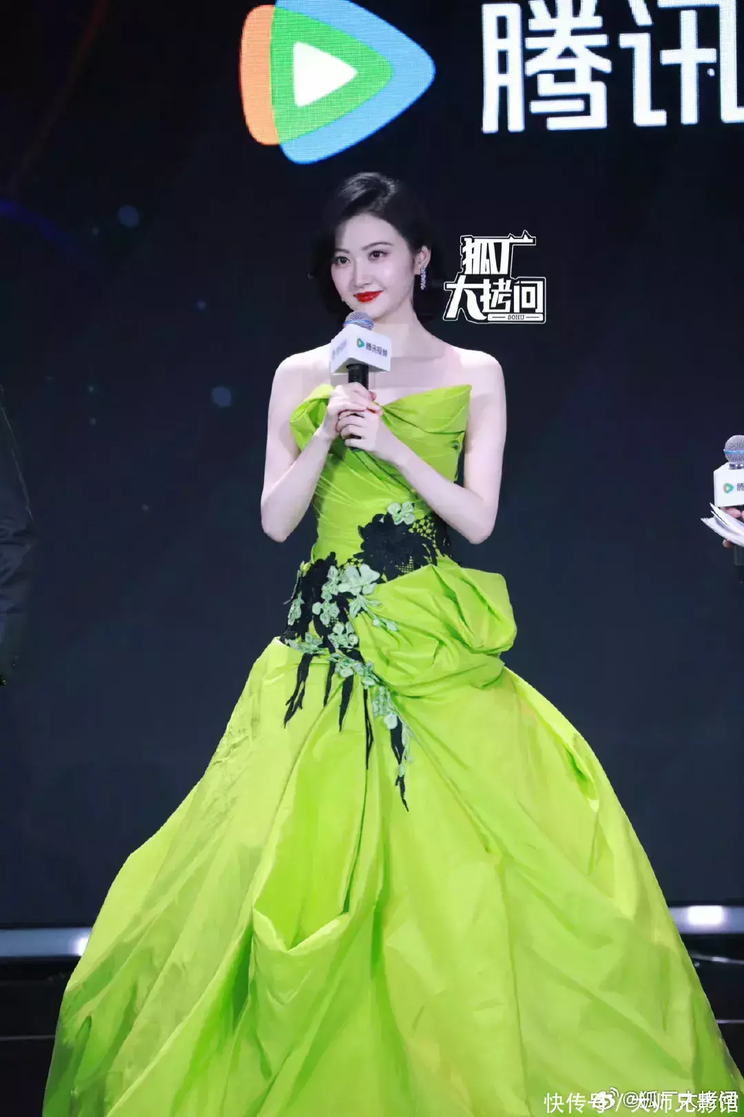张静仪绿色的裙子很面子,又显白